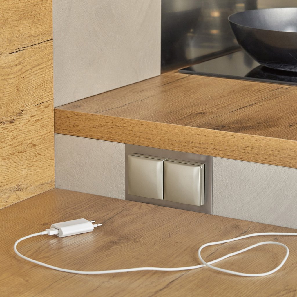 Prise double carrée avec clapet en ABS à encastrer - finition aluminium - 16A - 230V - 2P+T
