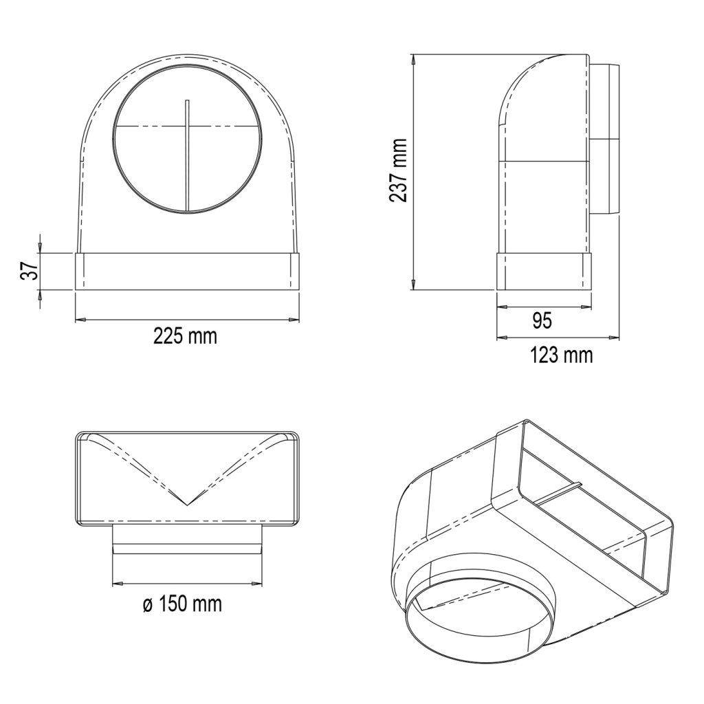 Raccord rectangulaire -Type 150 blanc-220*90mm/⌀150mm