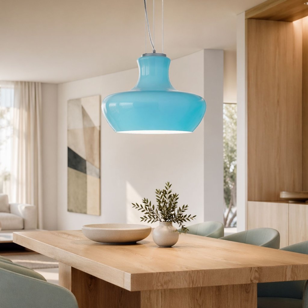 - Diffuseur en verre soufflé enchemisé bleu brillant.