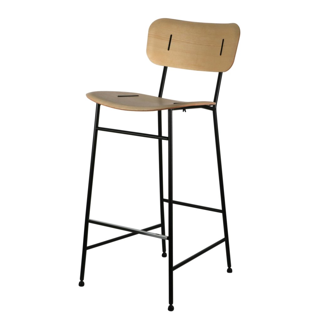 Tab.bas PIUMA-Structure noire-Dossier et assise en bois teinté naturel