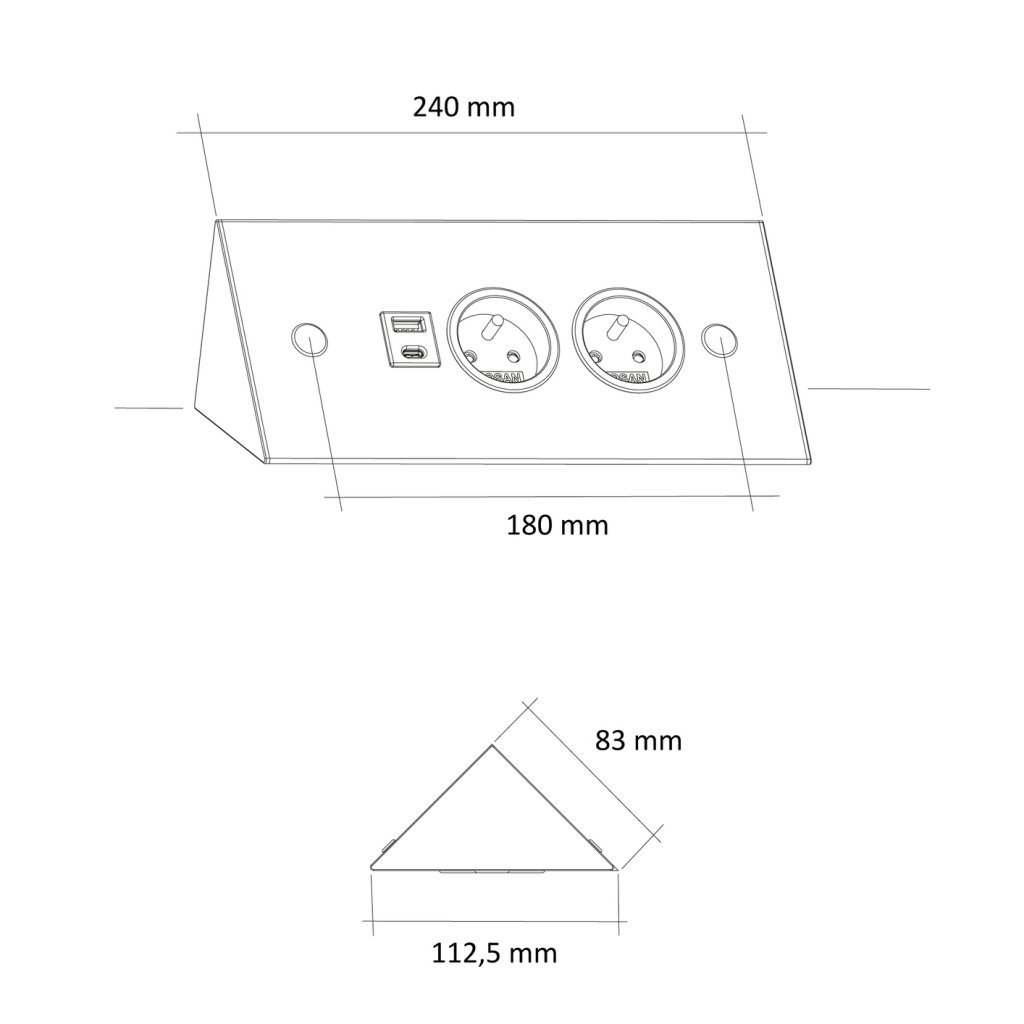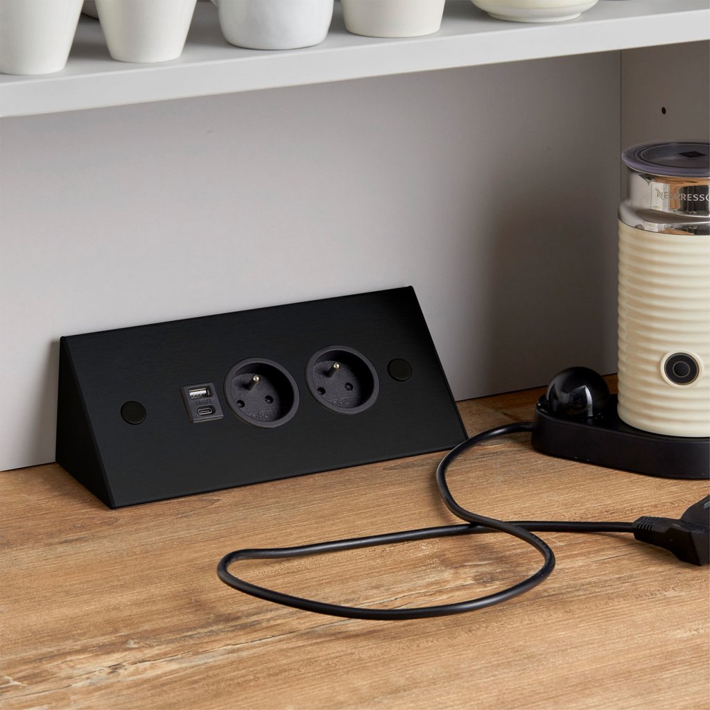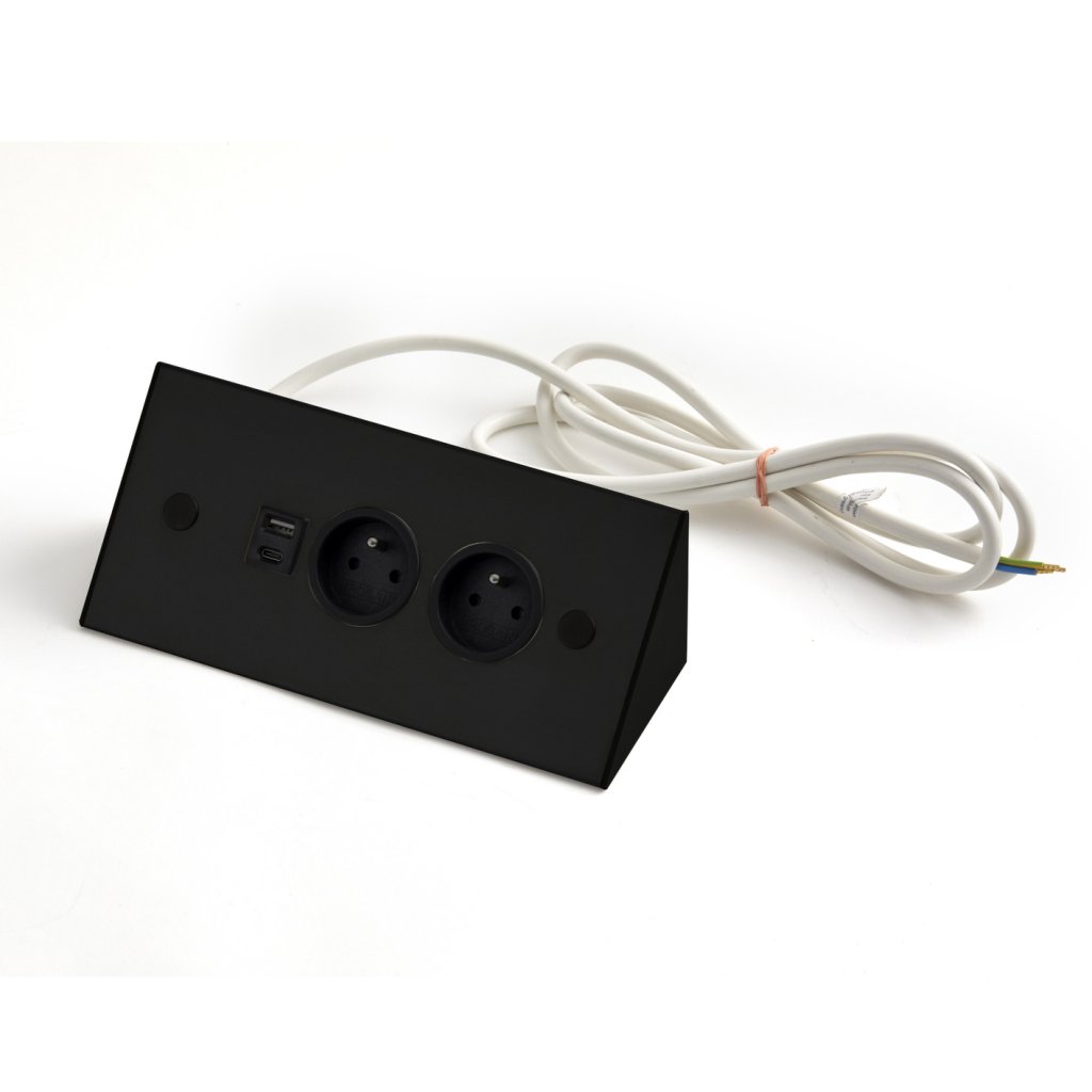 Bloc 2 prises d'angle noir mat avec port USB A/C