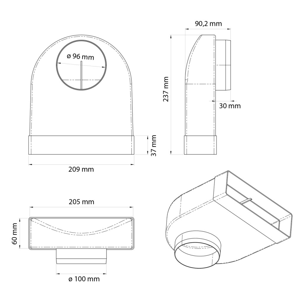Système d'évacuation d'air rectangulaire - Raccord coude
