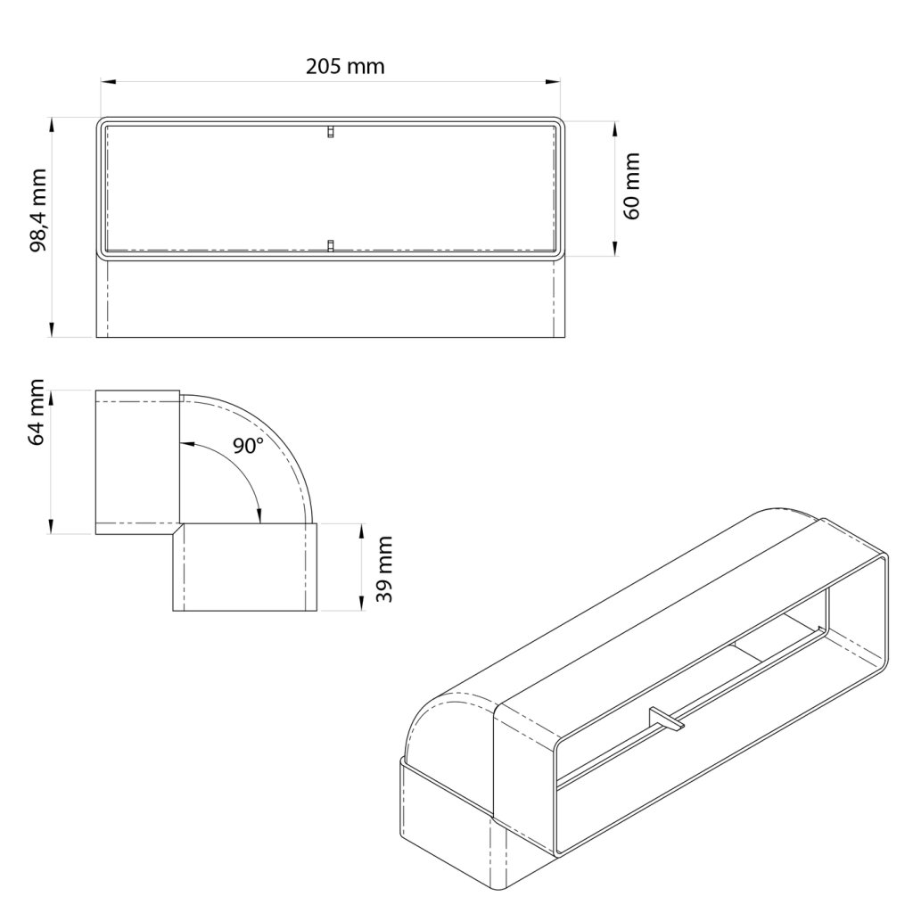 Raccord vertical 90°-Pour rectangulaire-Type 125 blanc (204*60mm)