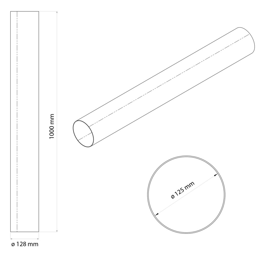 Tuyau rigide rond-L.1000mm-Type 125 blanc-Cotes intérieures 125mm