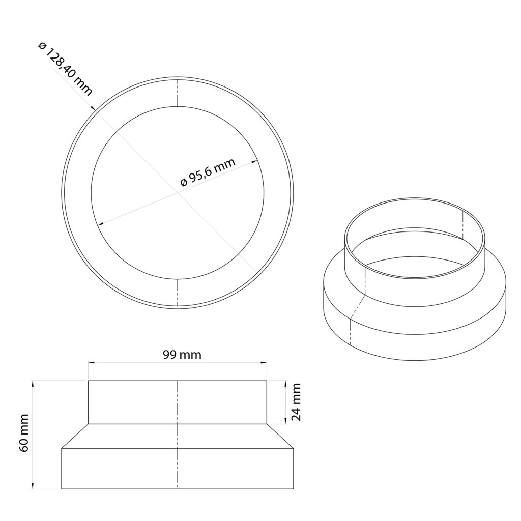 Réducteur pour conduit rigide rond-Type 125 blanc-⌀125 à 100mm