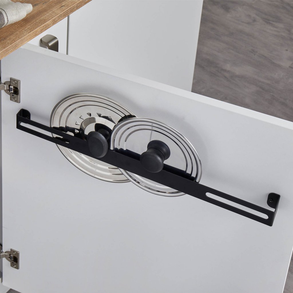 Barre range-couvercles en acier noir mat - longueur 510 mm- Profondeur de 21 à 42mm