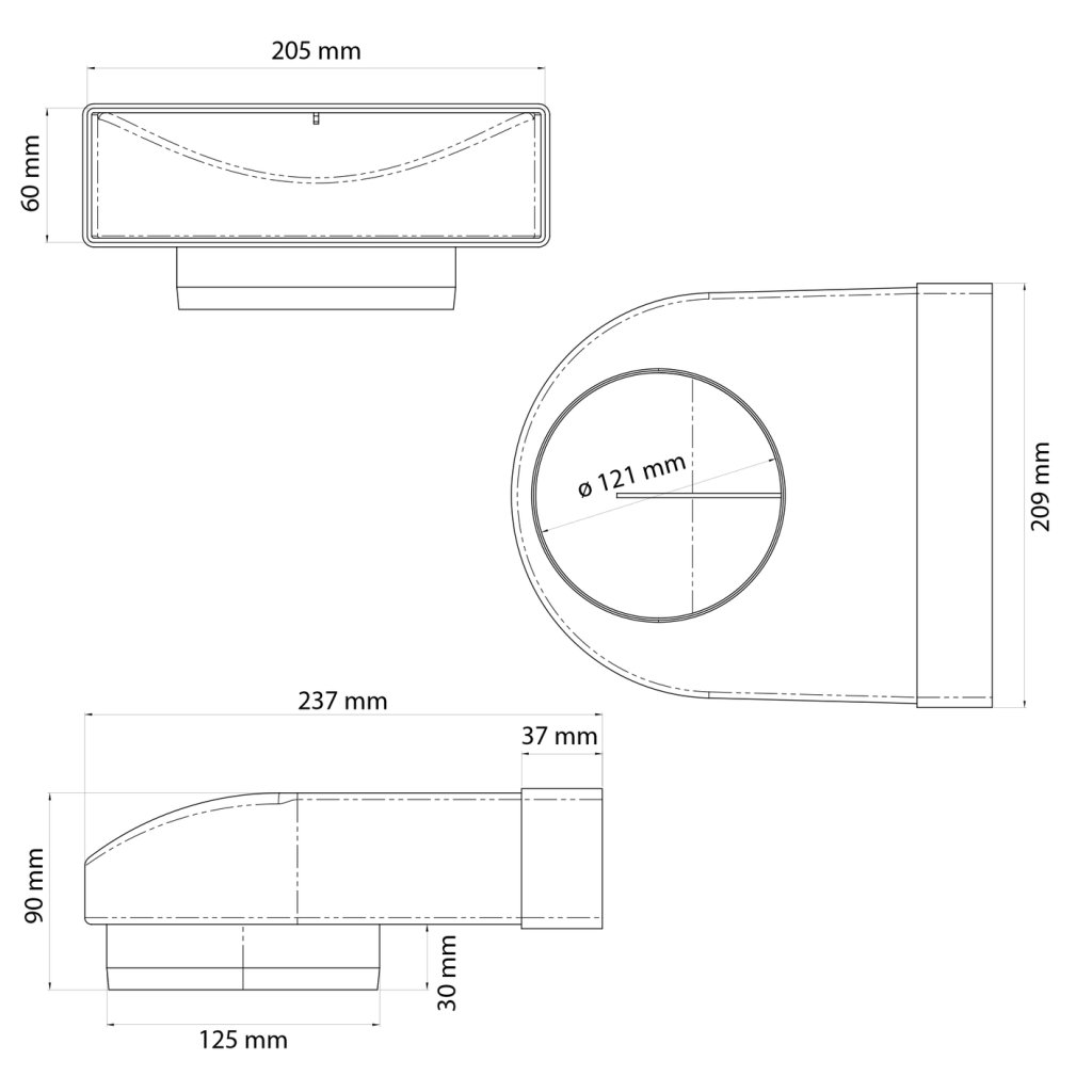 Système d'évacuation d'air rectangulaire - Raccord coude avec rallonge