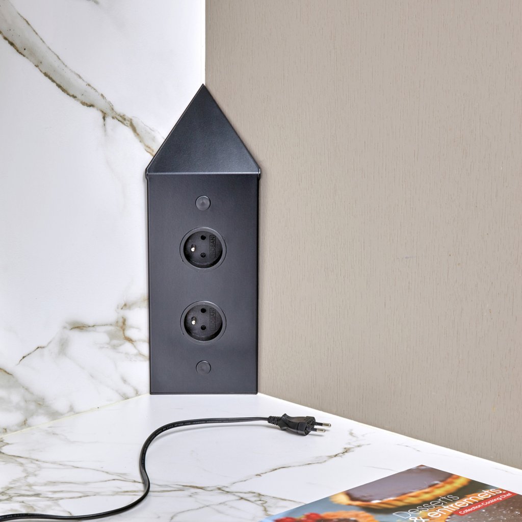 Bloc 2 prises d'angle - finition noir mat - prise noire - 16 A - 230V - 2P+T