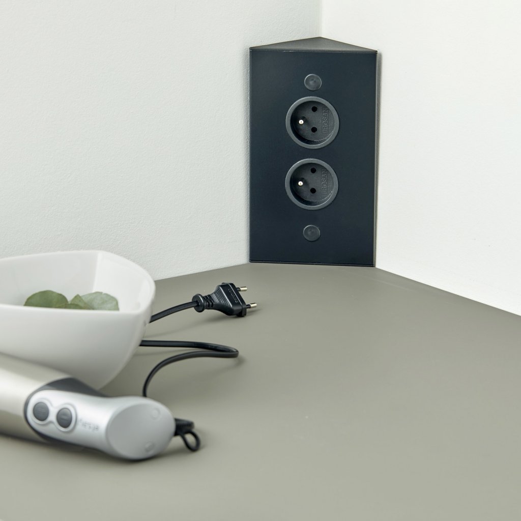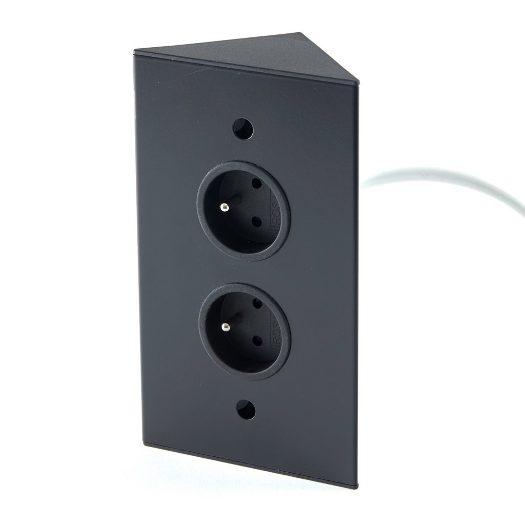 Bloc 2 prises d'angle (200 x 112,5 x 83) - finition noir mat - 16 A - 230V - 2P+T