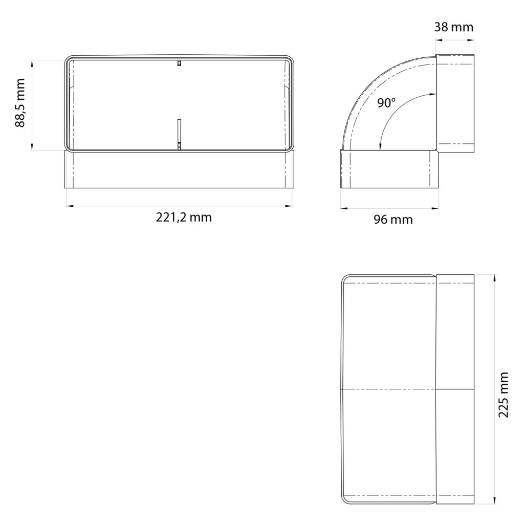 Raccord Vertical à 90°-Pour conduit rectangulaire-Type 150 blanc (220*90mm)