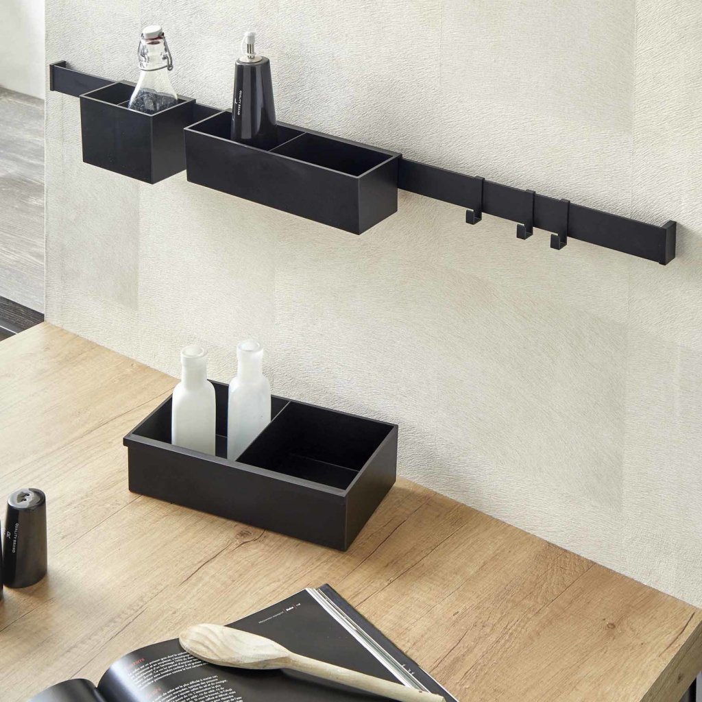 Kit barre de crédence avec 2 crochets - l. 23 x L. 600 x H. 42mm - finition noir mat