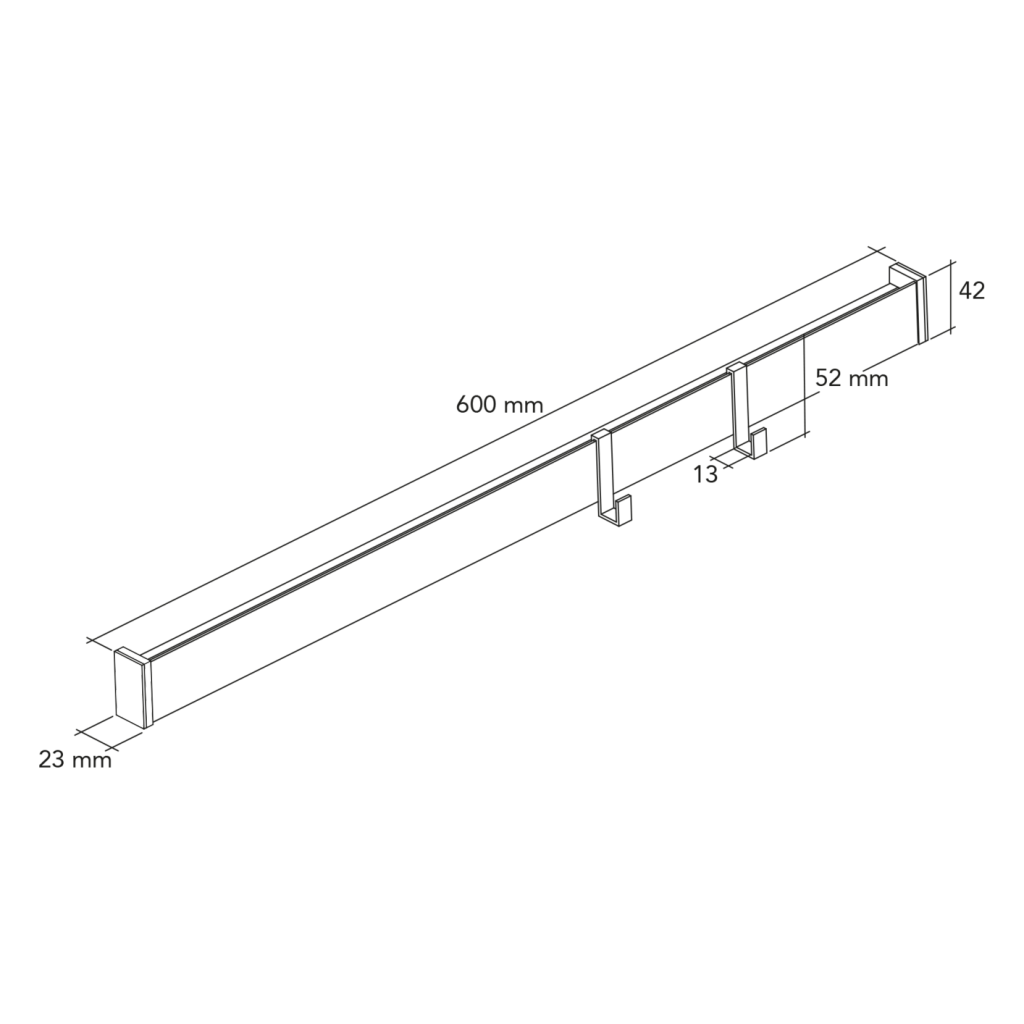 • Dimensions : L. 600 mm H. 42 mm profondeur 23 mm
